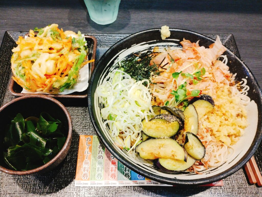 薬味そばは最初は夏の限定メニューとして登場しグランドメニューに昇格した商品。今は年中食べられますがやはり夏においしく食べられるメニューですね。クーポン券でお好きなトッピングをしたり(カレールーだけはお勧めできません(笑))、前述のとおり無料トッピングを使ったり、自分好みの味を見つけましょう!