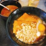 ゆで太郎システムはエスビーに特注した家庭風マイルドカレールゥを使用しているそうです。信越食品も同じなのかはわかりませんが店舗により少し辛かったり煮込まれていたりするような気がします。実際、閉店した麻布台店のカレーは継ぎ足していたと店長が言ってました。具は豚肉、玉ねぎ、人参とシンプルで食べやすいカレーです。マイルドなので一味や七味、ゆで太郎システムなら赤鬼なんかで辛味アップも良いと思います。